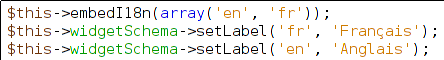 Jusqu'içi, rien d'étonnant. Le problème surgit lorsque je créé des tables i18n, c'est à dire lorsque je fais ce type de schema.yml